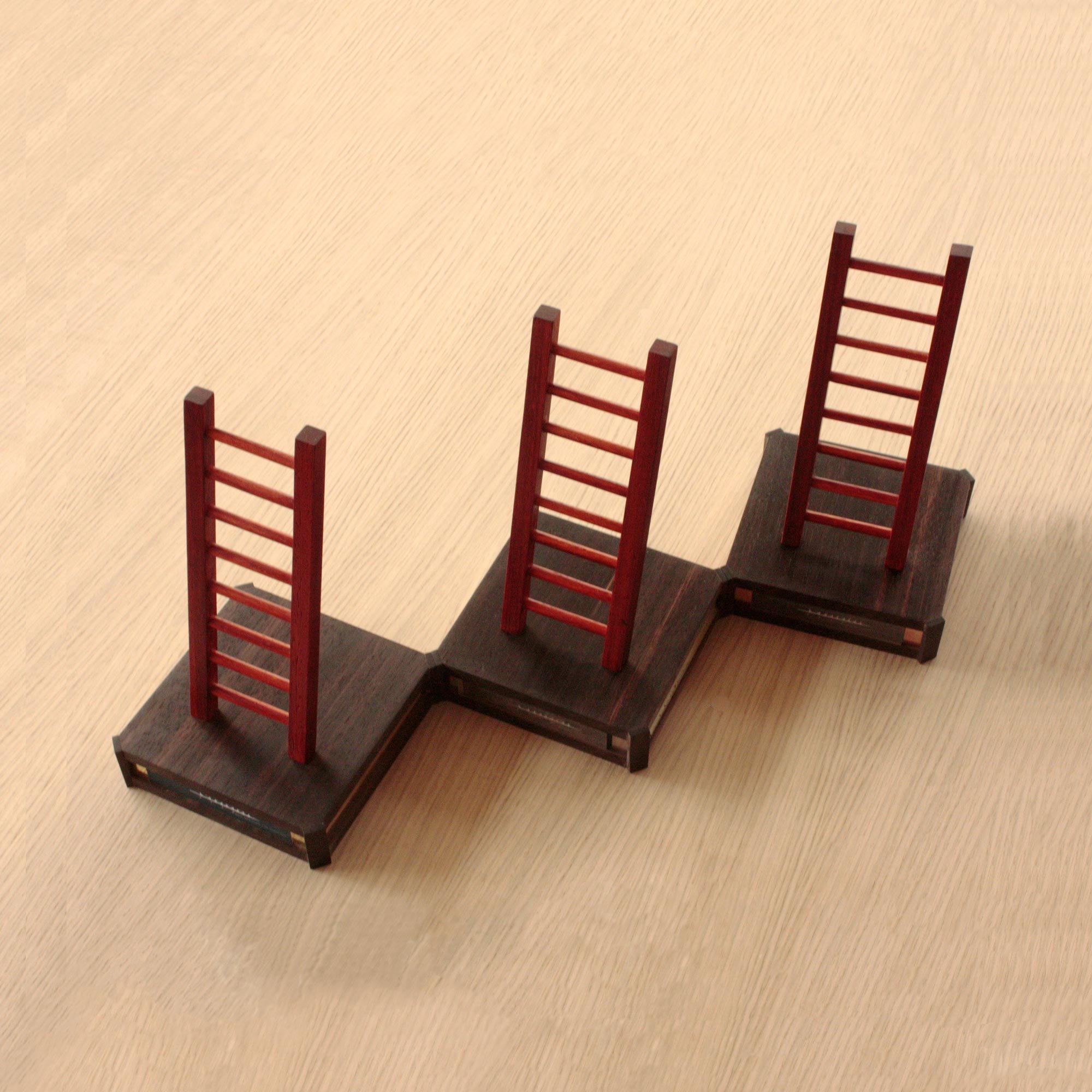 Pour le Trophée Aviron 2012 de Guerlain, nous avons conçu des trophées en bois de padouk, bois d’ébène et métal, inspirés par l’exigence de la compétition.